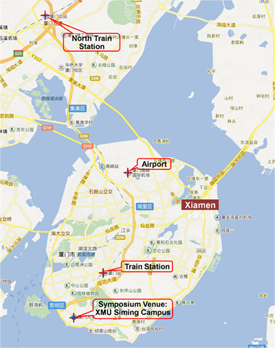 From Xiamen North Railway Station to XMU Siming Campus (about 30 km), you can take subway line 1 to Zhenhai Road Station (镇海路站) and then take bus line 1/21/45/841, getting off at Xiamen University (South Putuo Temple) station (南普陀站) or take bus line 2/20/22/29/48/71/96/135/659/857, getting off at Xi Cun Station (厦大西村站) (for about 1.5 hours). You can also take a taxi for about 90 CNY. |